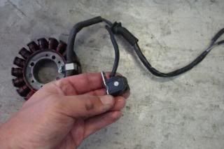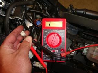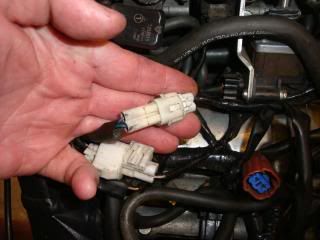 Could someone please provide an image of the CPS connector under the tank. The bike is in my parents garage and my dad is going to measure the resistance of the CPS for me. Unfortunately he is having trouble followng the wire back from the stator housing.